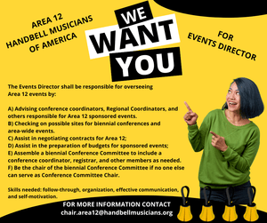 The festival format will be much as it has been in previous years. We encourage each participating group to perform a piece of their choice. As always, if you'd like your ensemble to ring a separate piece but are short a person or two, we will have ringers available who would be happy to fill in.